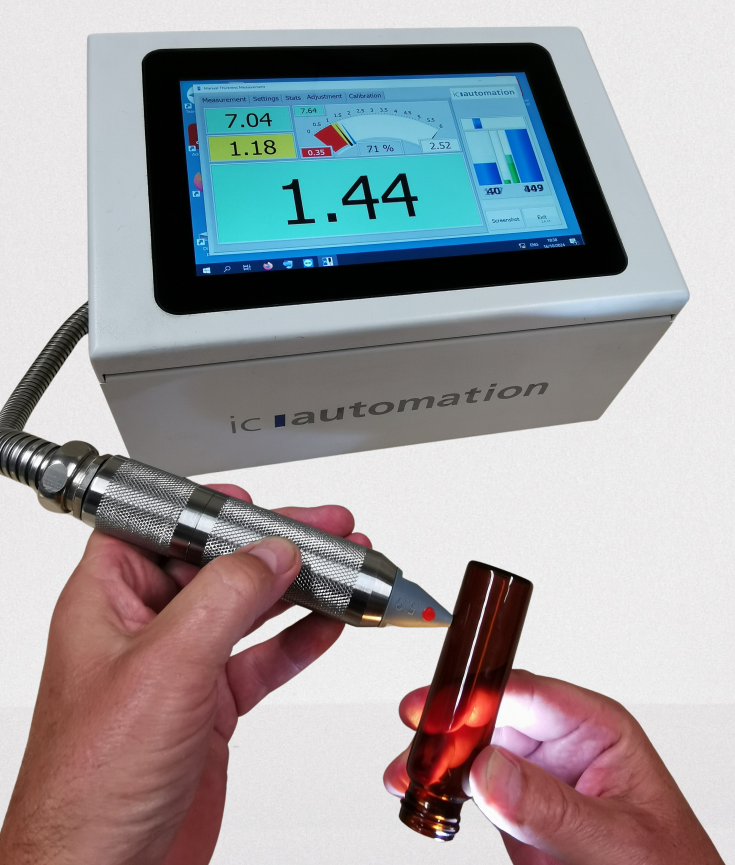 Die optische Glasdickenmessung beschädigt das Glas nicht und liefert sofort genaue und zuverlässige Dickenmesswerte. Dank der einseitigen Messung kann auch die Dicke von geschlossenen Behältern gemessen werden, wie z.B. Glühbirnen oder(gefüllten) Flaschen.
